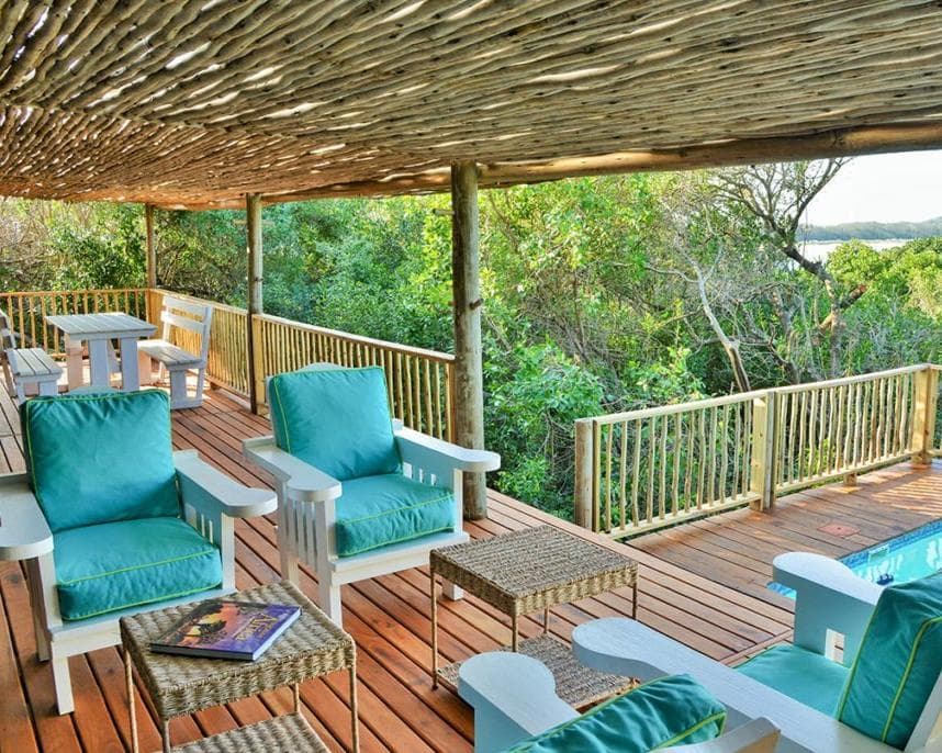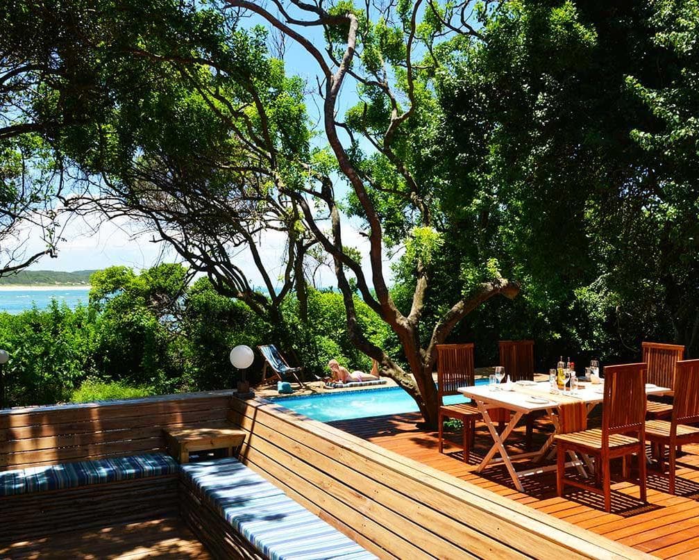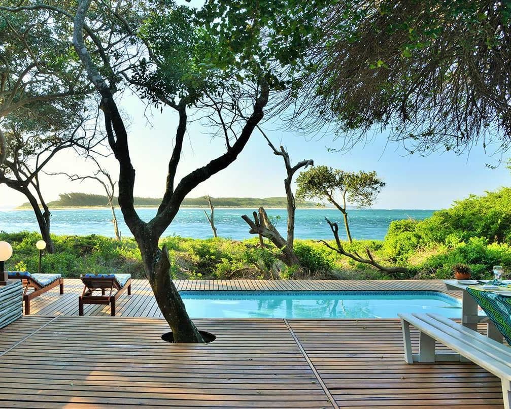 The pool and the braai area are surrounded by a large deck, under large shady trees and only a few meters from the beach. These villas can accommodate up to 8 adults and 4 children (under 12 years).